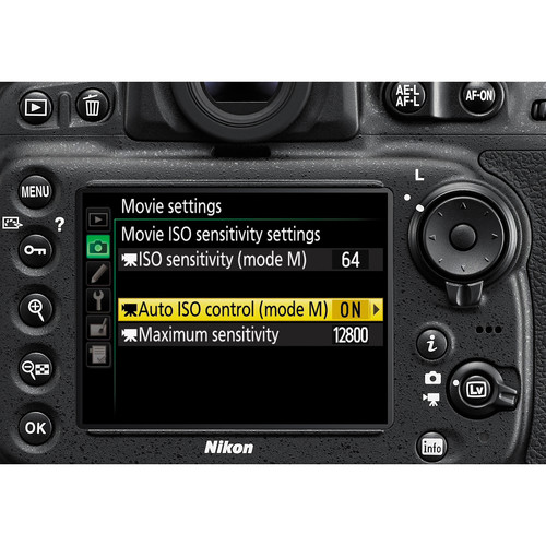 Video recording is supported in both FX and DX formats with an ISO range from 64 to 12,800 and expandable to 51, 200. Simultaneous recording to memory cards and to an external recorder is now supported. Auto ISO adjustment is possible in manual mode for smooth exposure transitions. Nikon's 3D noise reduction reduces random noise, distortion, and flicker when filming at high sensitivities. Zebra mode on the camera monitor shows you exactly where highlights are. A built-in stereo microphone as well as jacks for external microphone and headphones are provided. You can fine-tune audio levels in isolation both before and during recording and select the sound range (wide/voice).