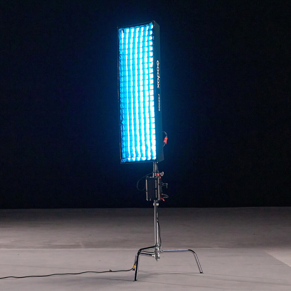 Color and flexibility combine with the KNOWLED F200SR RGB Flexible LED Light Mat from Godox. Expanding the brand's F series of foldable LEDs, the F200SR will add a variety of colors to your video or photo productions. Not only is this 1 x 4' LED mat physically flexible, but it has also been designed for flexible RGB color control. This 250W LED light has a wider CCT range that is adjustable from 1800 to 10,000K compared to the bi-color F series. The light also brings more creative options than its previous version, with 14 effects for easy lighting simulations. It offers ample power and control methods as well. The F200SR is a lightweight and portable solution that can literally be bent or folded to suit different environments. The light comes with the controller, a connector cable, a power cable, a metal bracket and adapter holder for mounting, a standard softbox for diffusion, and a bag for storage.