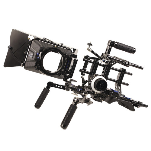 V-Lock Baseplate & Shoulder Pad - 15mm LWS Support Rods - 4 x 4 Carbon Fiber Matte Box - For Lenses with Up to 100mm Diameter - Two Rotating 4 x 4 Filter Stages - 15mm Rod Mounting, Swing Away Design - Follow Focus with Adjustable Hard Stops - Universal Articulating Handgrips - Top Handle, Curved Support Arms - Custom Hard Case with Wheels and Handle .