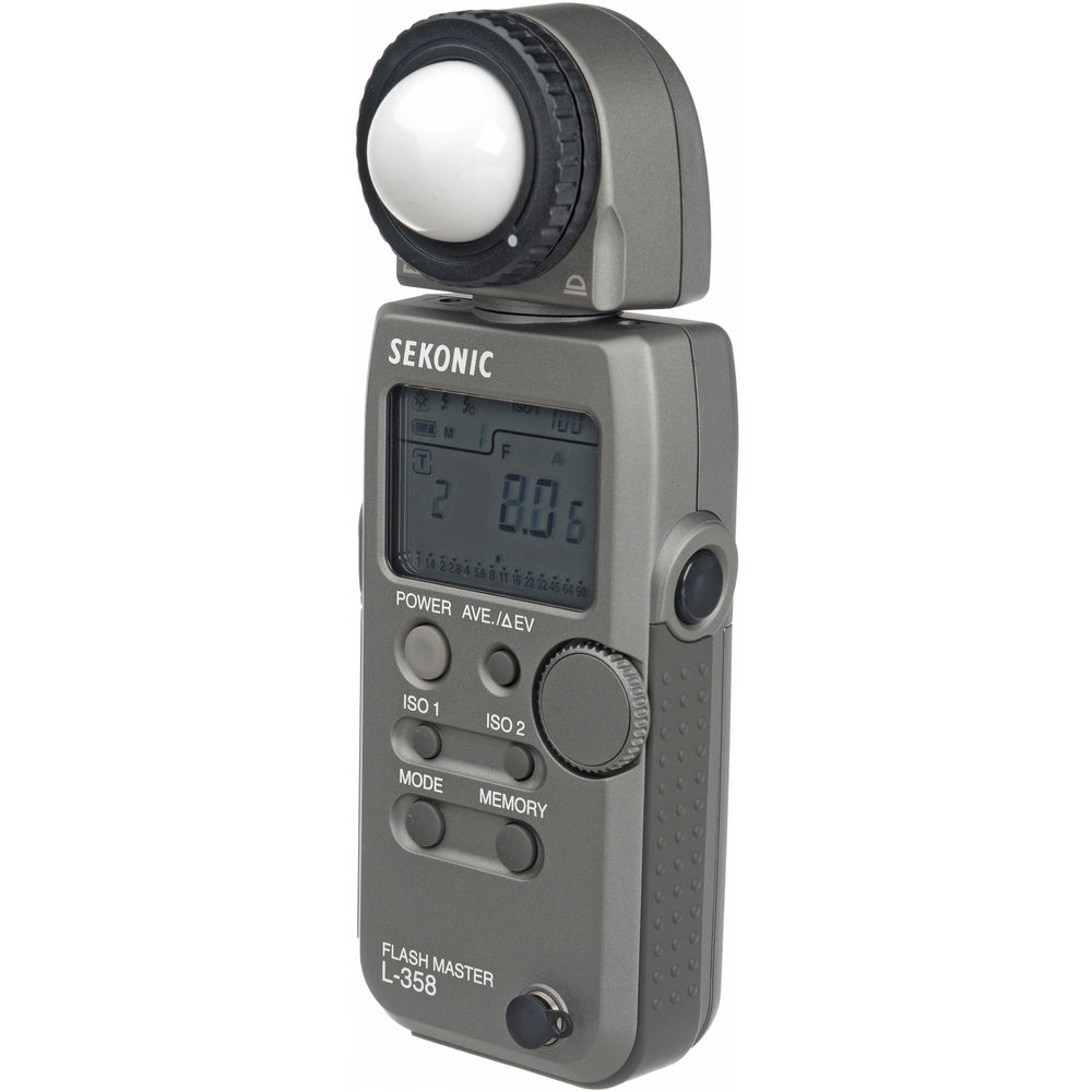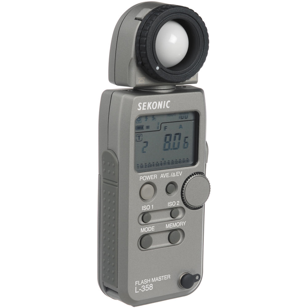 With options such as shutter speeds and apertures selectable in 1, 1/2 or 1/3 stop increments the L-358 makes operation most efficient by matching the displayed f/stop and shutter speed values to the photographer's camera. Additional features include all weather design, nine memory banks, a retractable lumisphere, included Lumigrid attachment for reflected metering and large cool-blue electro-luminescent backlit LCD.