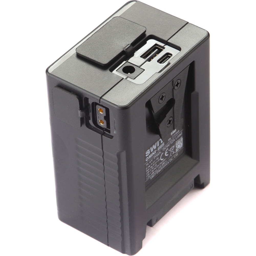 The V-mount OMNI-99S 99Wh Pocket Battery from SWIT easily powers your cine rigs and high-power LED lights on set while remaining ultracompact. The V-mount battery features a 99Wh capacity with a 150W at 12A high-load output. D-Tap, Barrel, and USB-A output ports offer alternative ways to power your on-camera monitor, fill lights, and mobile devices.